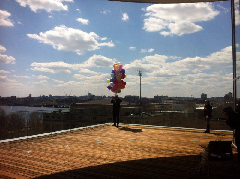 "El pasado 16 de marzo a las 14 horas de un apacible día casi primaveral, un teléfono móvil despegó desde el Laboratoire Paragraphe de la Université Paris 8. El teléfono, dotado de una grabadora de vídeo encendida y un sistema de GPS, iba tomando altura propulsado por un manojo de globos llenos de helio, que lo arrastraban inexorablemente hacia lo desconocido. Su dueño, el artista Roc Parés seguía en vivo su merodear errático por los cielos de París, con una mezcla de aprensión y entusiasmo. En cambio aquellos que no pudieron acudir presencialmente a la performance, pudieron seguirla a través de la página web del proyecto, que transmitió en tiempo real las imágenes y el audio difundidos por el dispositivo.