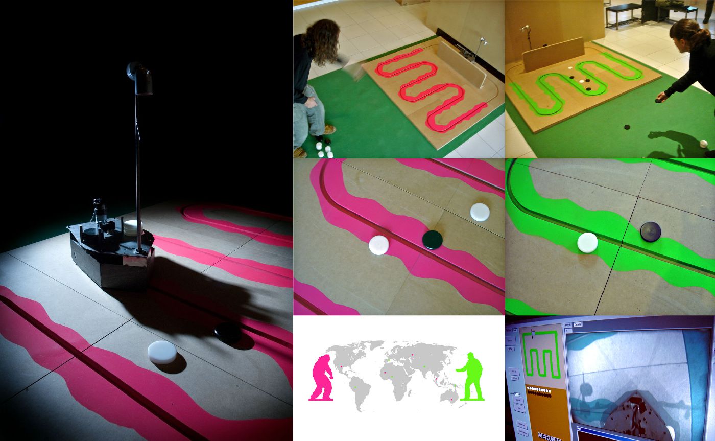 El proyecto parte de la posibilidad de desdibujar la relación local / visitante a través de la mezcla entre el factor de la distancia física y la presencia virtual, ya que permiten jugar desde diferentes ámbitos locales. Cada equipo puede participar desde su ciudad o crear equipos trans-locales. Un sistema de visión artificial interpreta la posición de las fichas lanzadas por cada uno de los participantes y un robot dispenador de fichas las coloca en el espacio de juego remoto, cosa que permite que el juego avance sin necesidad de pantallas y sin mediación oral ni escrita entre jugadores.