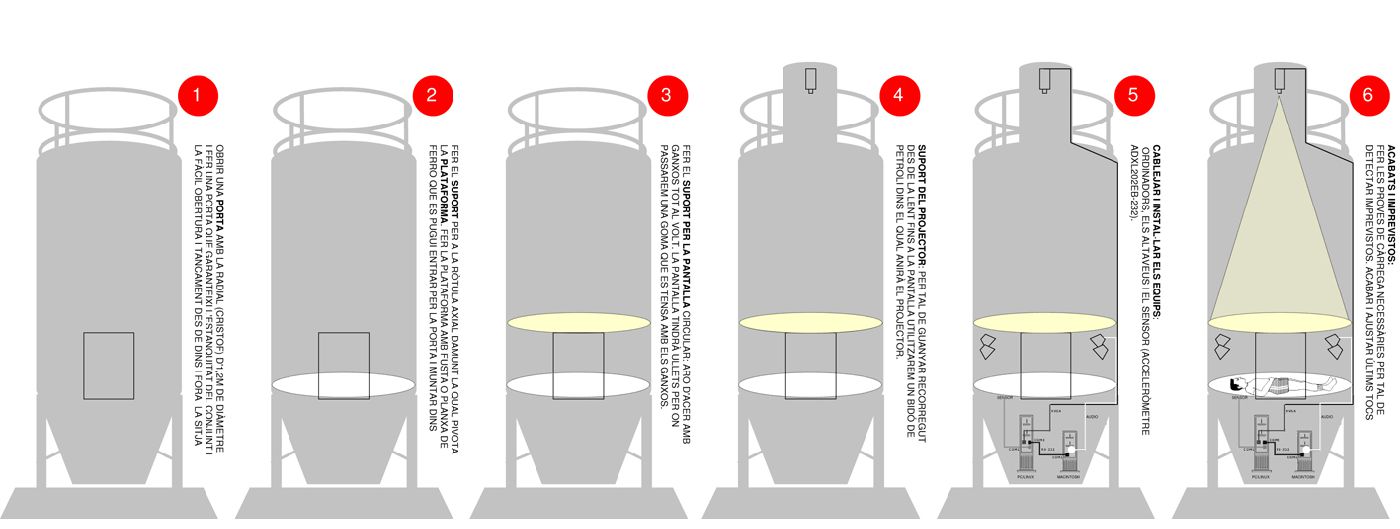 Un silo de pienso, típico del paisage agrícola industrial de la comarca donde vivo, reconvertida en un laboratorio itinerante de experimentación audiovisual interactiva. (Camallera, 2006).